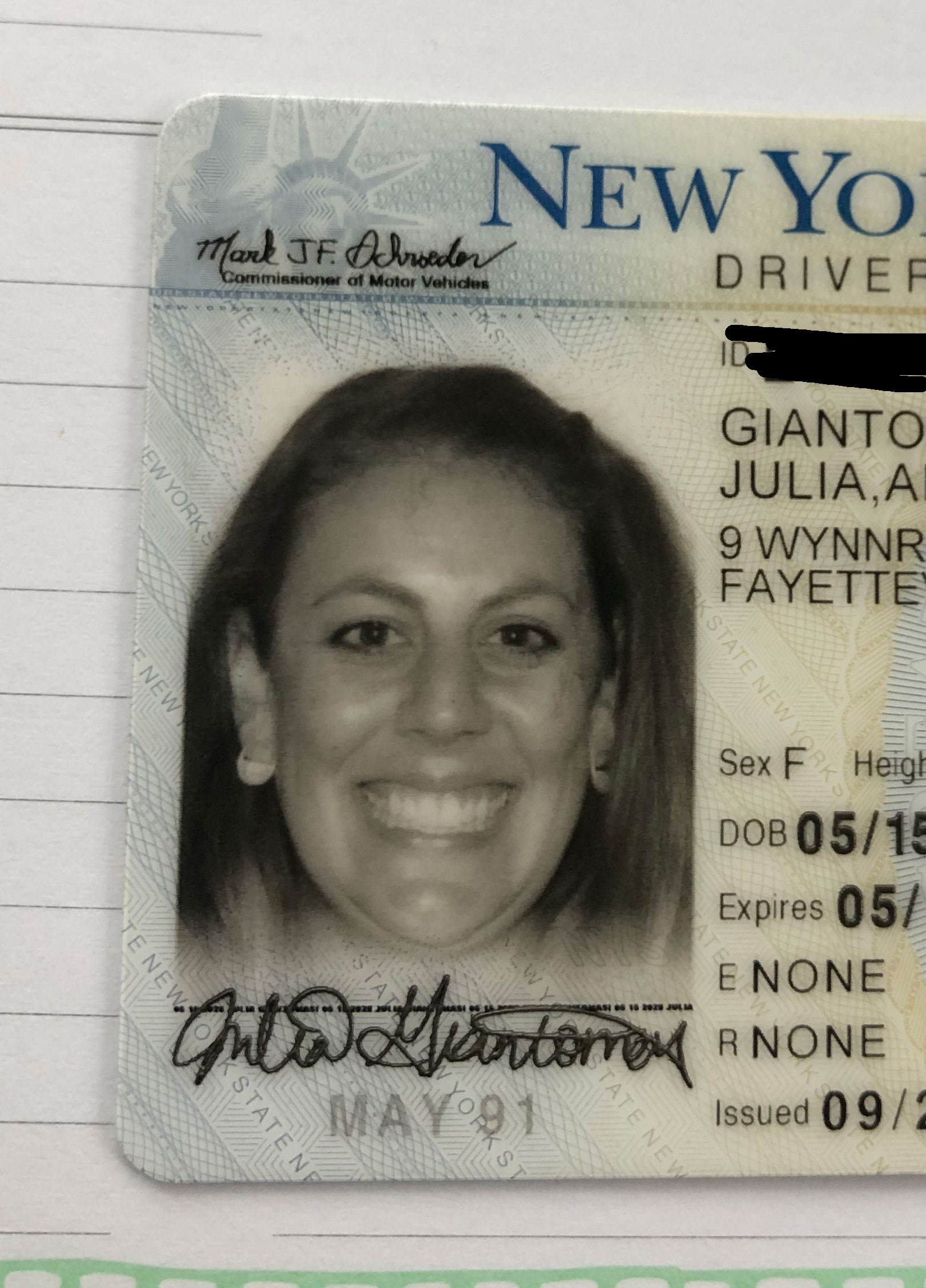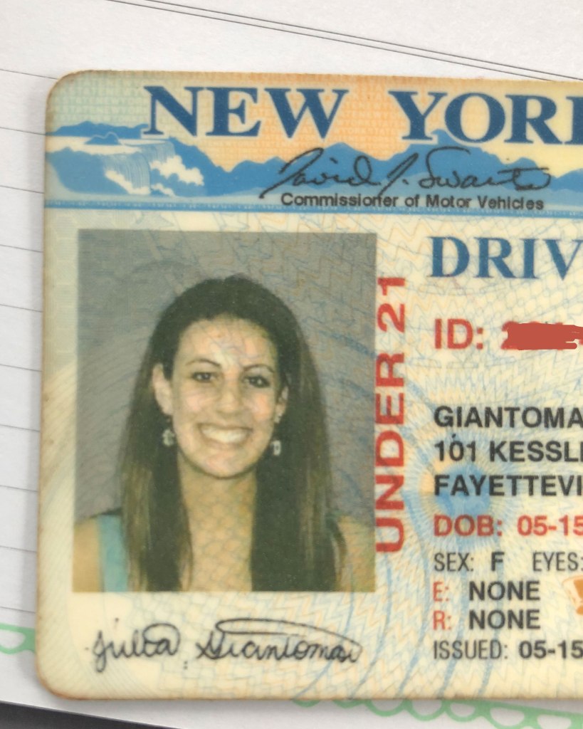 Either way, the rule stands and as I mean mugged the camera and Roz asked me if I approved of my photo, I looked her dead in the eye and said, “it’s disgusting but I’m not a no-teeth smile kinda girl so it is what it is.” This is when Roz decided to have a bit of compassion (not sure why) and goes no, no, let’s retake it. I really didn’t want to. The stage was set. I’m not Tyra Banks smizing up a storm. I have not and will never perfect the art of the closed mouth smile like my sister and Taylor Swift have so effortlessly done. I’ll always either look pissed, stoned or be smirking like I have a secret. But I appeased Roz and took a step back for round 2. This time I was on the verge of tears and just wanted to get out of this seventh circle of hell. As you might’ve already assumed, the second photo was even worse than the first. And that’s what we ended up with. Roz’s grizzly smokes a pack a day “Welcome to New Jersey” as she handed me my paper license and sent me on my way could’ve been accompanied by the Jersey salute and it would’ve been appropriate for how this big life change is going for me so far. Here I am pictured below, with proper lighting and portrait mode (after I sobbed in my car on the way home, I might add) just to show you what DMV employees with an influencer start-up kit could accomplish if they even cared…or allowed genuine smiles.