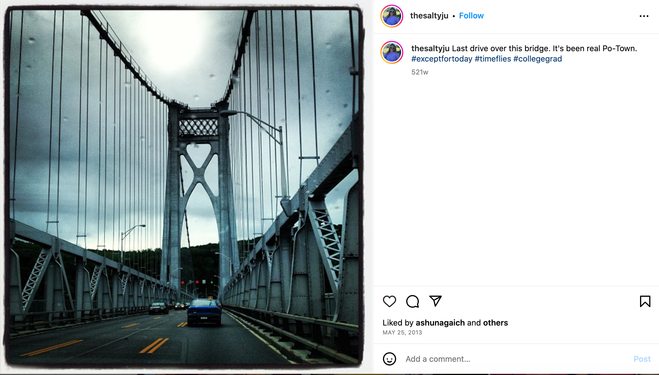 So there you have it. I started writing this 32 year old to 22 year old real talk blog around my birthday but as it turns out, it all started flowing out of me when I took a road trip back to Saratoga, which was where I lived for the majority of ages 18 to 30 (with stints in Syracuse and Boston mixed in.) While I was on my way back to one significant place from my past, I passed by another on the Marist College Class of 2023’s graduation day. And as I came up on Exit 18 for New Paltz/Poughkeepsie under overcast skies spitting rain, it felt like I could literally blink and put myself right back on that final grey drive over the Mid-Hudson bridge into adulthood. Also rain AGAIN? Really? Is it a 10 year God smites the grads thing? Hope the administration wrote a similar blog to themselves from 10 years ago and their advice was to move the ceremony inside at the first whisper of inclement weather. Anyway, back to me painting the scenery of my meta light bulb moment. As I drove past Po-Town feeling incredibly nostalgic, scream-singing Taylor Swift and tearing up a little bit, just like I was a decade ago as I peeled out after the most sopping wet and disappointing day, it hit me. I may have thoughts and words of wisdom for 10 years ago Ju, but the truth is I still don’t really have it figured out and you know what? I don’t know if anyone actually does. Hindsight’s always going to be 20/20 and all we can do is seize every experience, feel all our feels and learn from our mistakes. And of course…go to therapy and try to be the best version of ourselves.