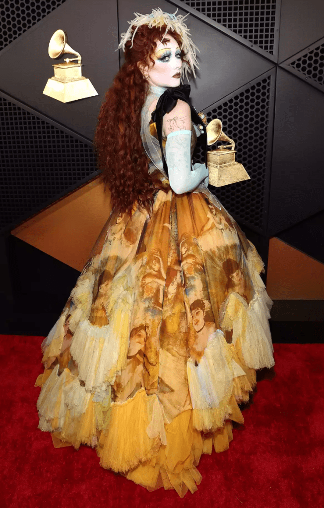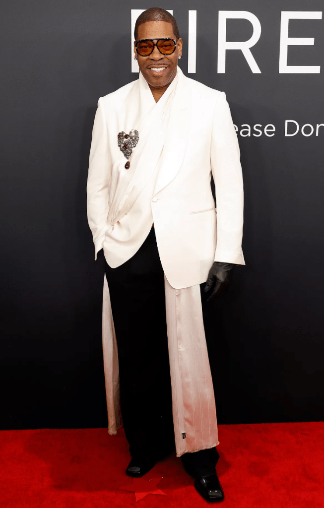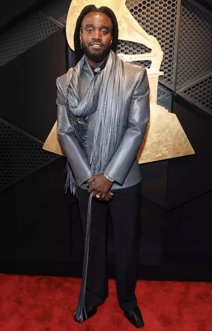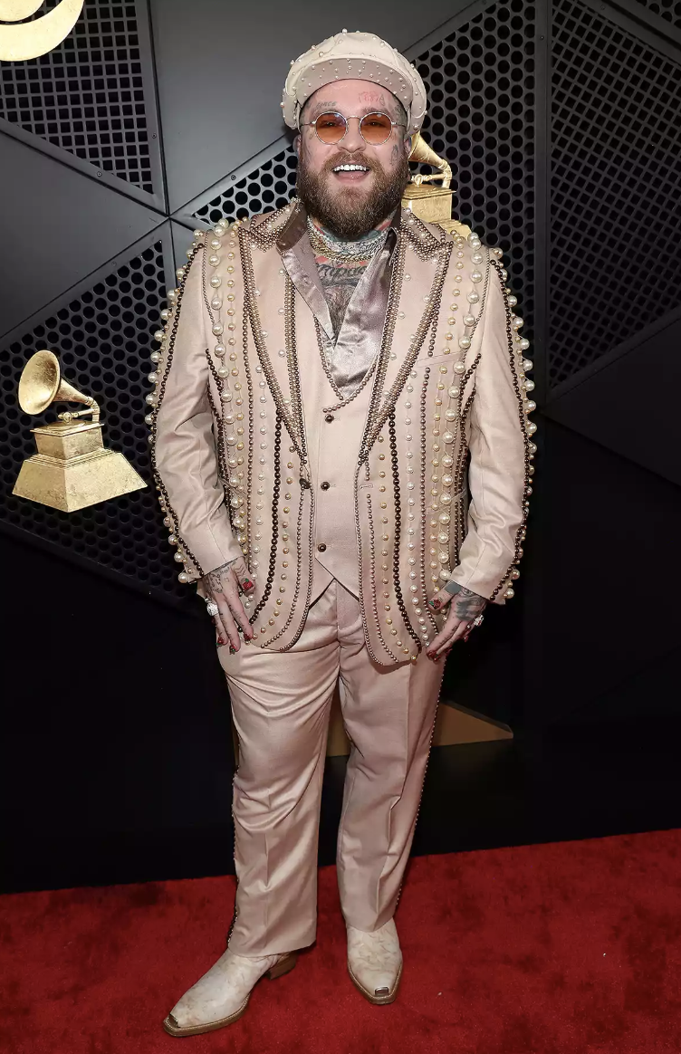 Sometimes I just give it to a person who’s wearing something super dumb but looks so happy and committed that I find myself loving this journey for them. Teddy Swims is a dude who can EASILY be confused with both Jelly Roll and Post Malone. Except neither of those fools would be caught dead in a pearl cap and matching silky pearl jacket. GET down with your PEARL self, Teddy!
