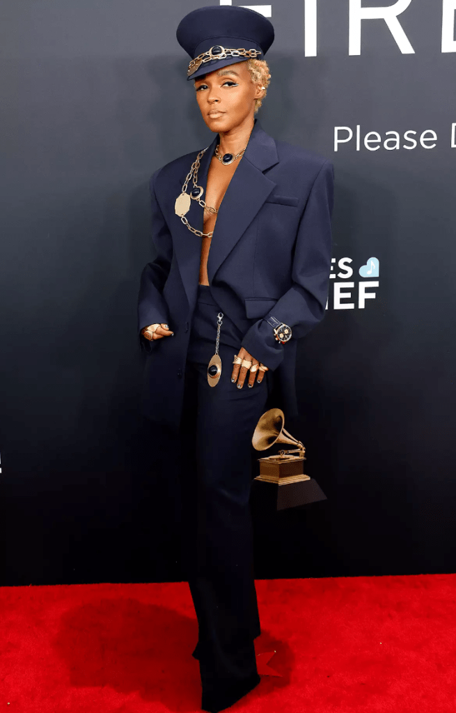 I know I came in real bitchy and you were probz expecting me to just dump all over every look but I MUST be feeling generous to give this a best dressed nod. I think it’s the coordination here for me. The Navy Blue set with matching hat. Janelle did an MJ/Quincy trib so she was channeling that era and honestly she dresses like MJ anyway, so it was a perfect match.