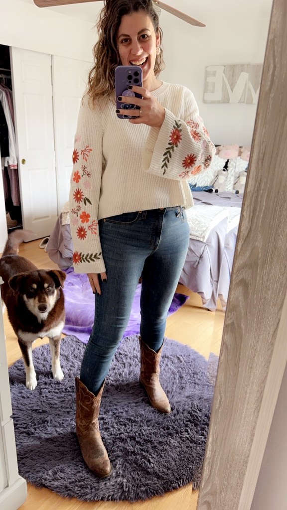 I don’t know if it was because this awards show was rescheduled twice or because it’s on cable or because it doesn’t really matter, but everyone SURE dressed like dumpster soup! In fact, I’ll go so far as to say that the men all looked stunning and the women all looked like they got dressed in the dark. #Feminism. No but seriously, I gotta calls it like I sees it. Kanye’s slave, oop, I mean wife, who showed up fully nude to the Grammys looked better than this ragtag crew. So in light of the fact that I gasped at half of these looks, I will most certainly not be dividing it up into categories. You get what you get and you don’t throw a fit. Here’s my Kacey Musgraves bohemian cowgirl inspired lewk that I wore to therapy after the Grammys this week. It didn’t receive rave reviews but my dog couldn’t take her eyes off me and that’s really all that matters. (Definitely didn’t have to do with the fact that she needed a walk and I was busy taking mirror selfies.)
