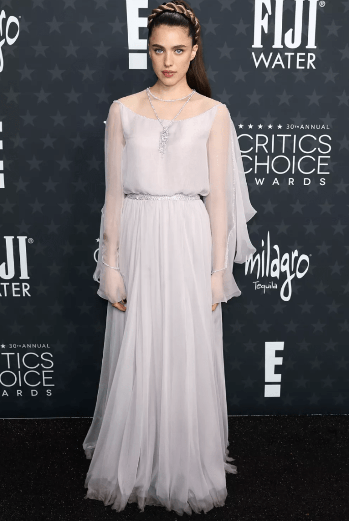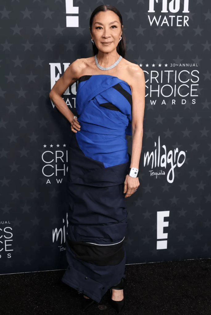 Is homegirl just matching her gowns to her skintone to her hair this awards season? Cause she’s 2/2 and I’m baffled by this. Just like I KNOW I said 1000 times in last year’s Barbie era…if you are nominated for a character that is a very bold, and COLOR CODED character with a distinct wardrobe, why are you not shoving that down our throats in your red carpet fits? I expected GUHlinda the good witch to be slamming pink all up in our bubbles. Not showing up in what I imagine lives at the bottom of a pond in the winter.