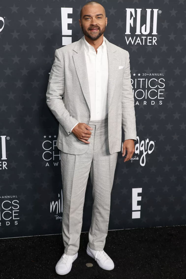 Classic charcoal exterior, spicin it up with the tie and shirt combo. Love this way more than his Grammys leisure suit.
