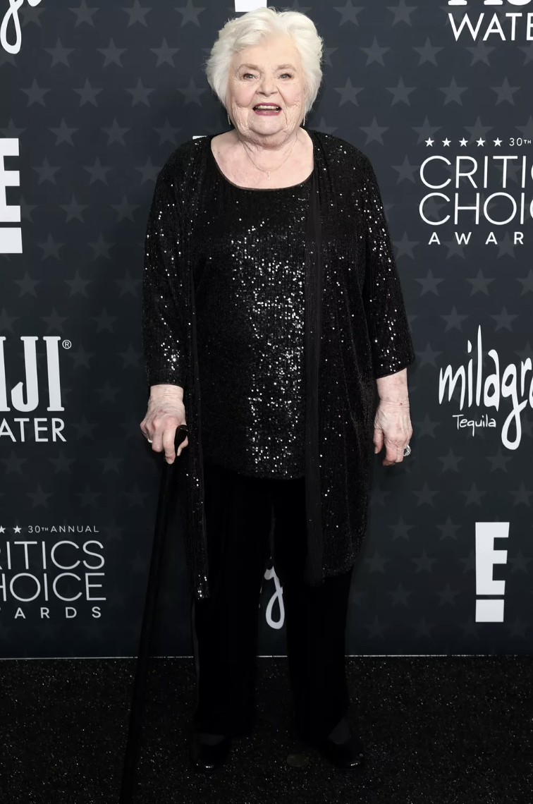 This is exactly what I would expect a woman in her 80’s to wear to a fancy function and she’s killin it! GET IT, JUNE!