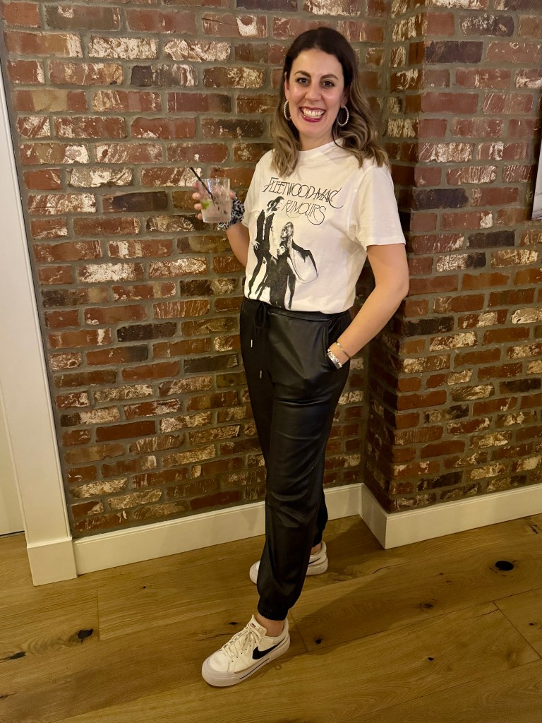 We’re almost through with awards season…and winter, God willing. The SAG’s are typically skipped by the gen pop who doesn’t need another opportunity to listen to the richies of Hollywood wax poetic about why they love being an actor. But they finally moved them to Sunday night on Netflix and let’s be real, we don’t have anything else to do on Sunday nights. I had a 4pm dinner reservation with the olds, carbo-loaded and had an hour to kill before the red carpet even started. If this is what it’s like to be 85, I’m there, baby. Can’t wait. This weekend I went on a mission to find a pair of jeans that fit me, and the result was me buying a pair of elastic waist pleather joggers and WHO NEEDS BUTTONS anymore?! I wore them out on the town last night and demanded my mom take a solo shot of me WERKIN them. Best dressed, AMIRITE?!