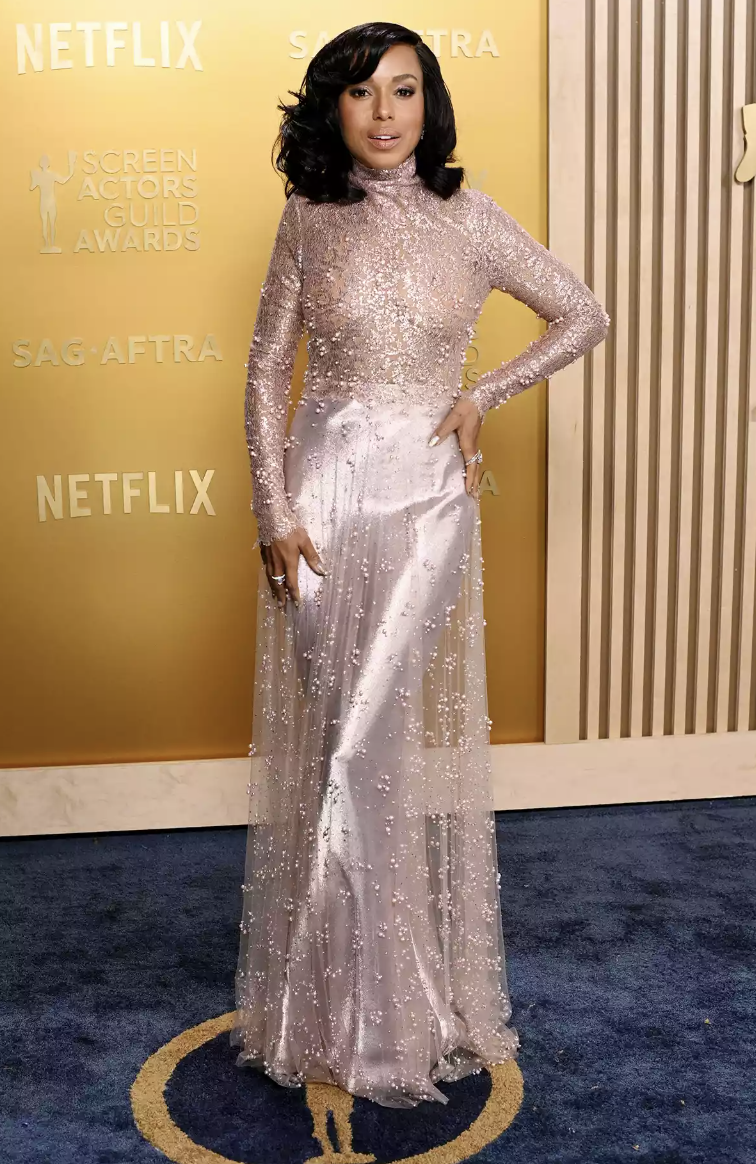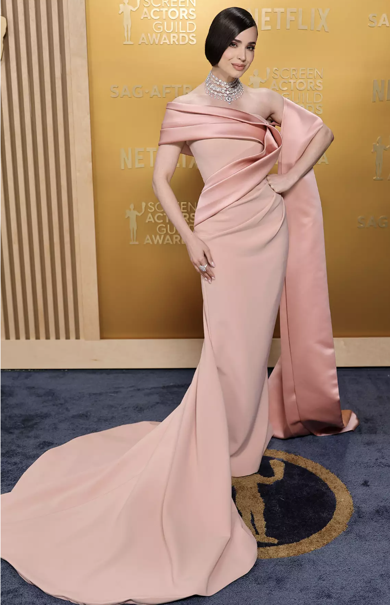 THIS IS HOW YOU DO A SOFT PINK! Dark hair, dark skin, and this color looks a bajillion times better. I said out loud as soon as I saw Kerry, “shining, shimmering, splendid.” And I meant it. This is my favorite look of the night and it ain’t even close. It’s fairy princess fun and glam, her hair completely matches the sleek retro vibe, and this is how you take a color of the moment and make it memorable.