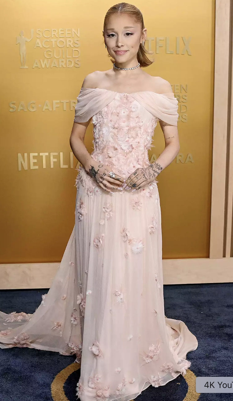I know you’re sick of me complaining about this but she’s GOTTA wear a different shade of pink. This pale pink is washing her completely out. I like the dress style and I think the flowers are pretty but I cannot look at another red carpet appearance by her looking like she checked herself out of the hospital against the Dr’s wishes to be there.