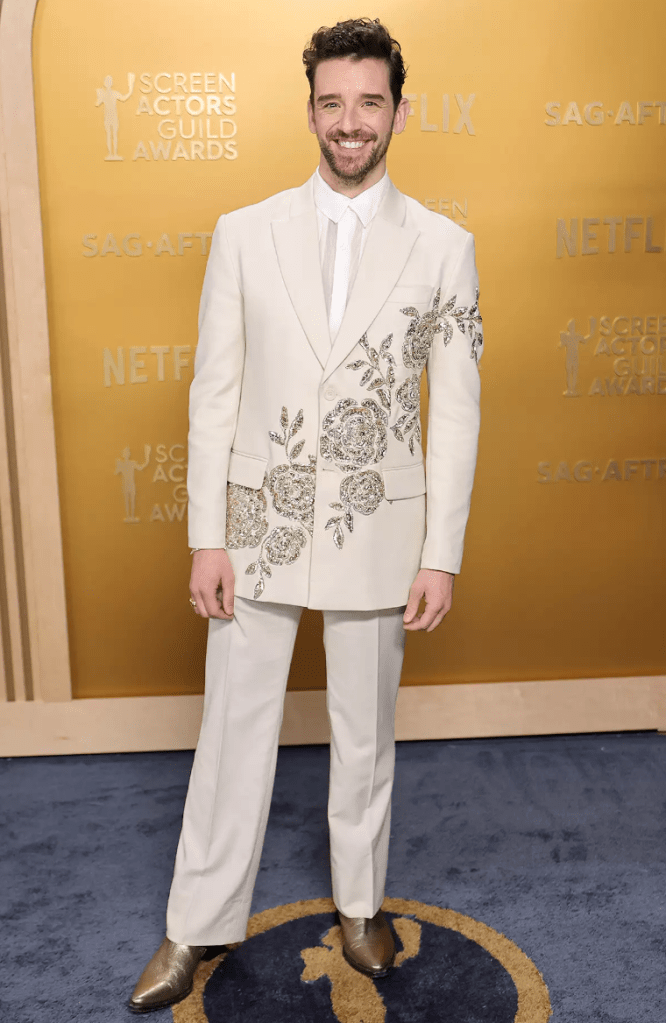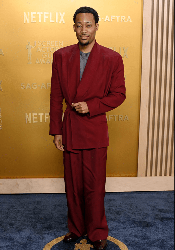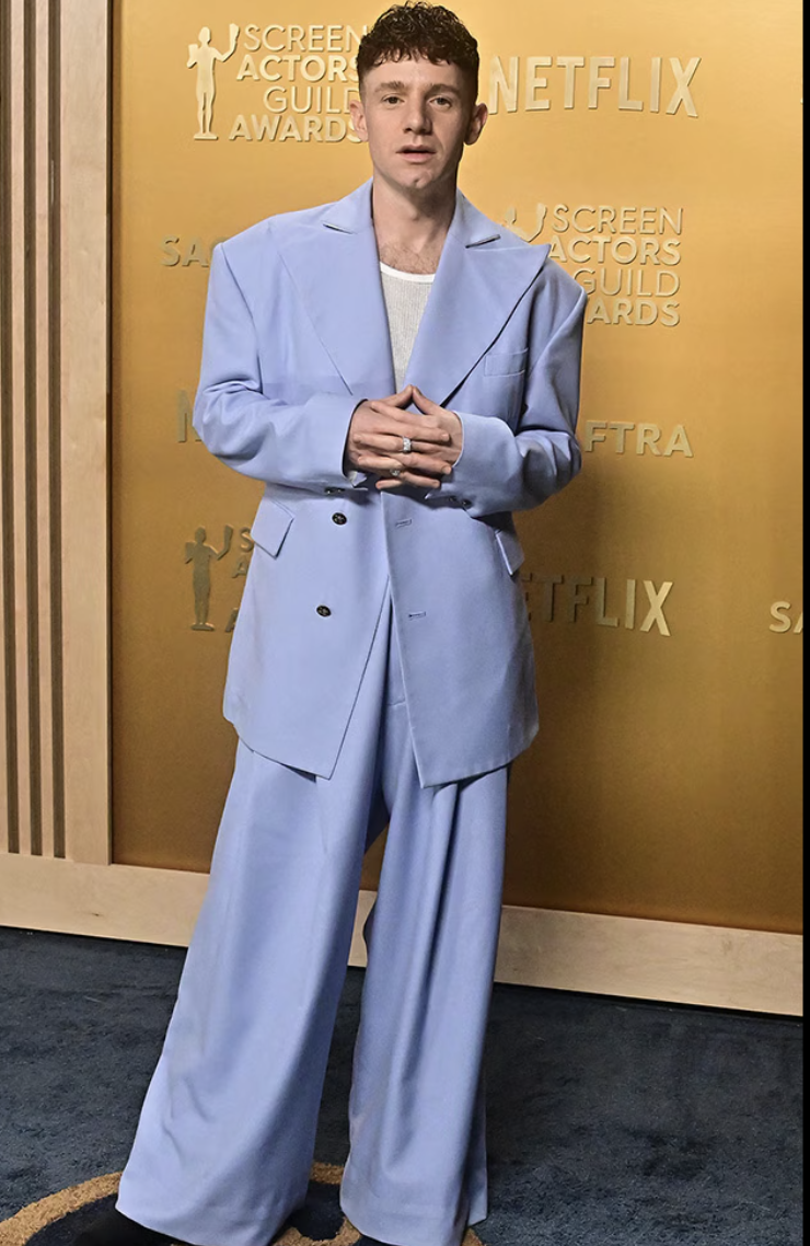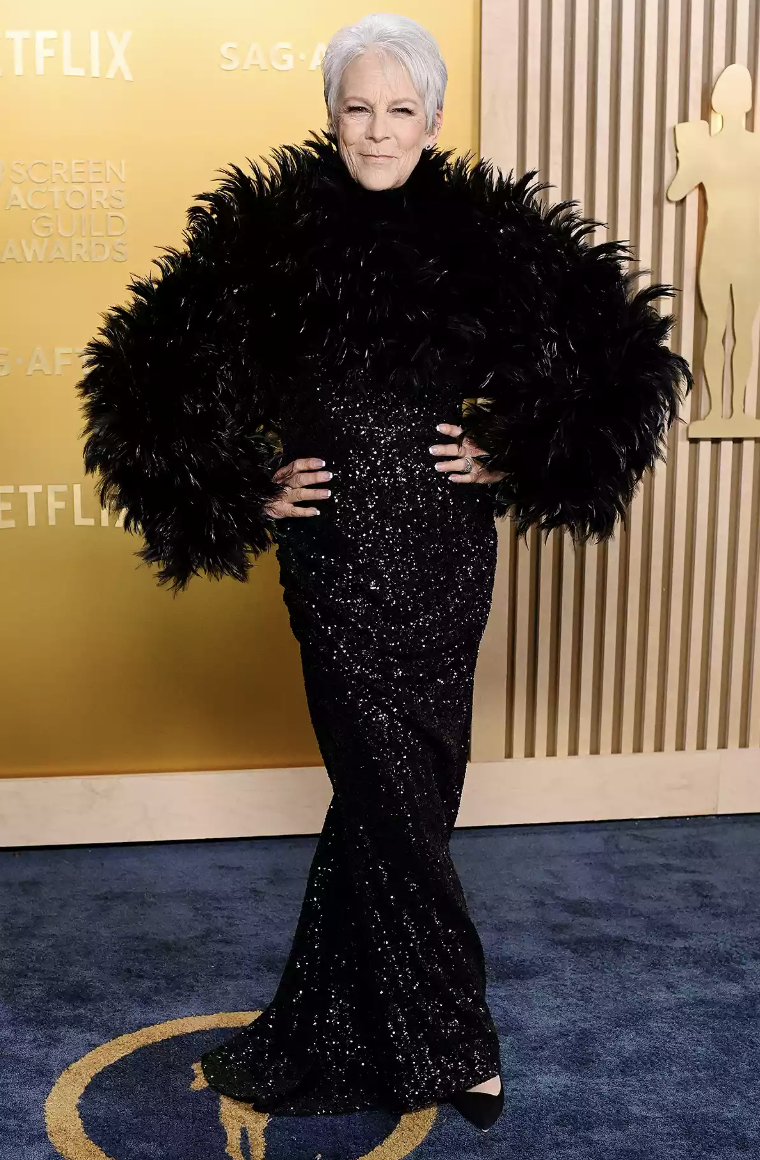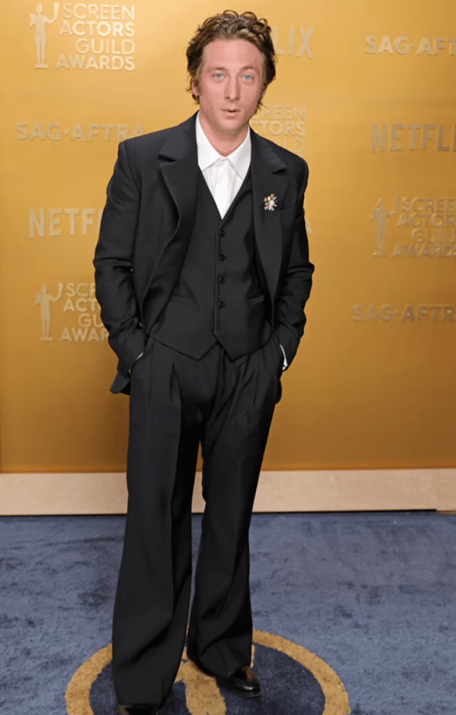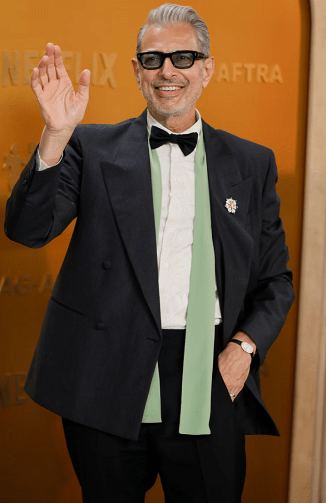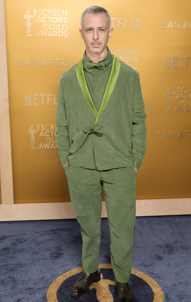 The pattern of this dress looks like worms. But that’s not what I want to discuss here. I want to discuss the fact that Jane Fonda was the first star to do a red carpet interview and I genuinely thought her batteries died mid-interview. Obviously as all red carpet “emcees” go, they’re essentially braindead and all they do is call women queens and tell them they slay and slobber all over them. But this chooch asked 2-3 legit questions and Jane short-circuited and stared at her with her mouth agape each time she was expected to answer. Yet when she accepted the life achievement award, she was able to give a VERY lengthy boring speech reading from a teleprompter. Is Jane Fonda a robot who needed to get plugged in and powered up for the show? You heard it here first.