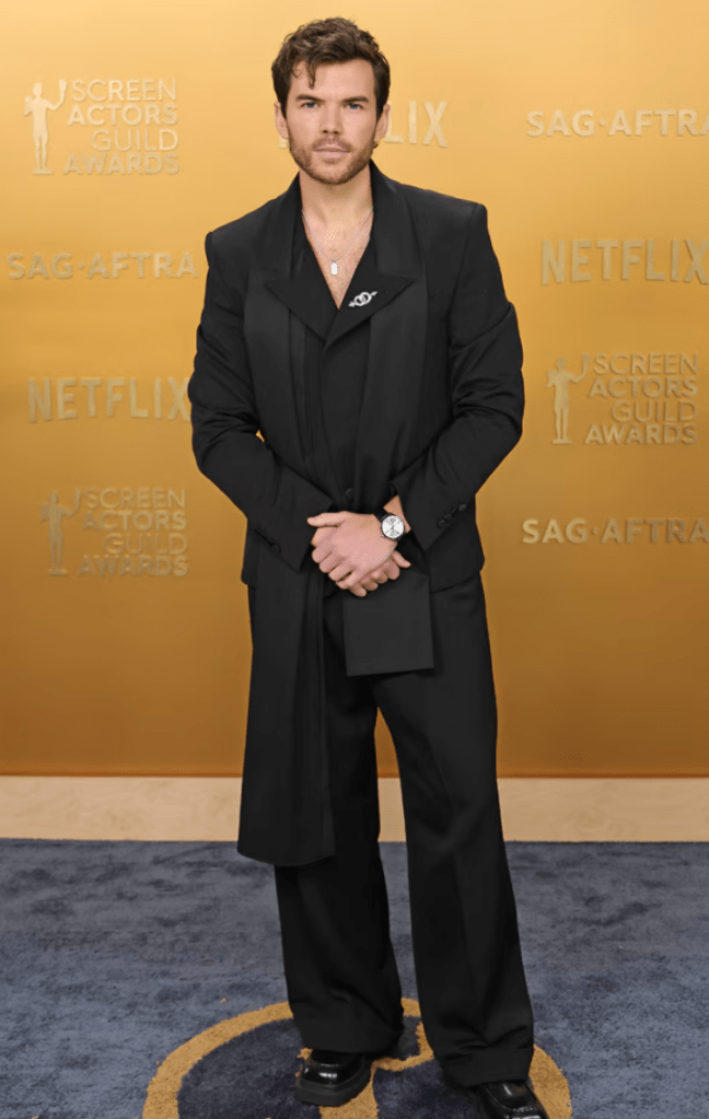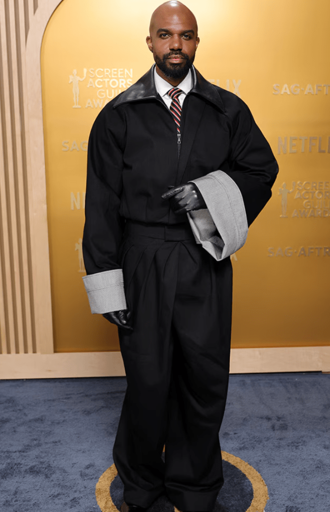 This is so hideous and he’s a walking velvet booger, but also the way that jacket is tied is also giving Karate class. He’s about to HI-YA his way right out of your nose.
