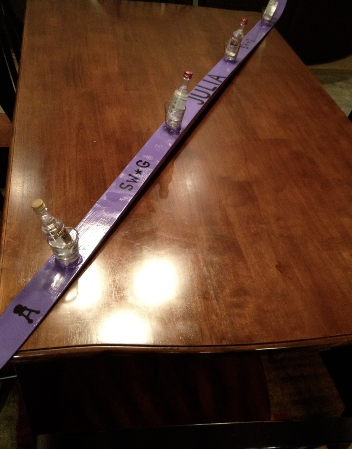 If I may, a moment of recognition for the Shotski, gifted to me on my 21st birthday by my brother-in-law who handmade it. It was EASILY my most prized possession. So much so, that I hung it on the wall as soon as I got back to school. My RA immediately told me to take it down because it promoted binge drinking, but it was a friend maker and a party starter all in one and I loved it so. One of the greatest gifts I’ve ever received.