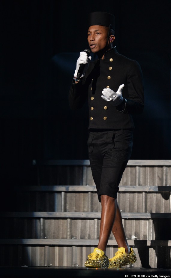 -Pharrell wins solo pop performance, struts onstage in his biz Bermudas and says “this is really awkward” a couple times before getting played offstage. If he’s referring to wearing knee length dress shorts to an awards show than I agree, it is really awkward.