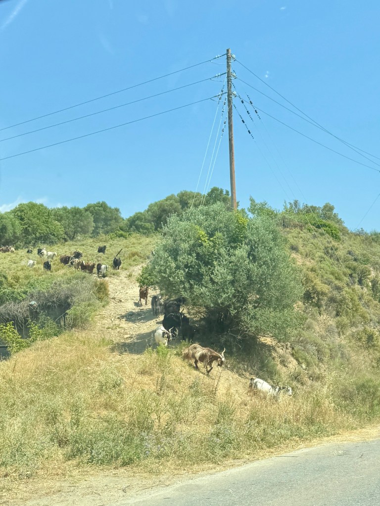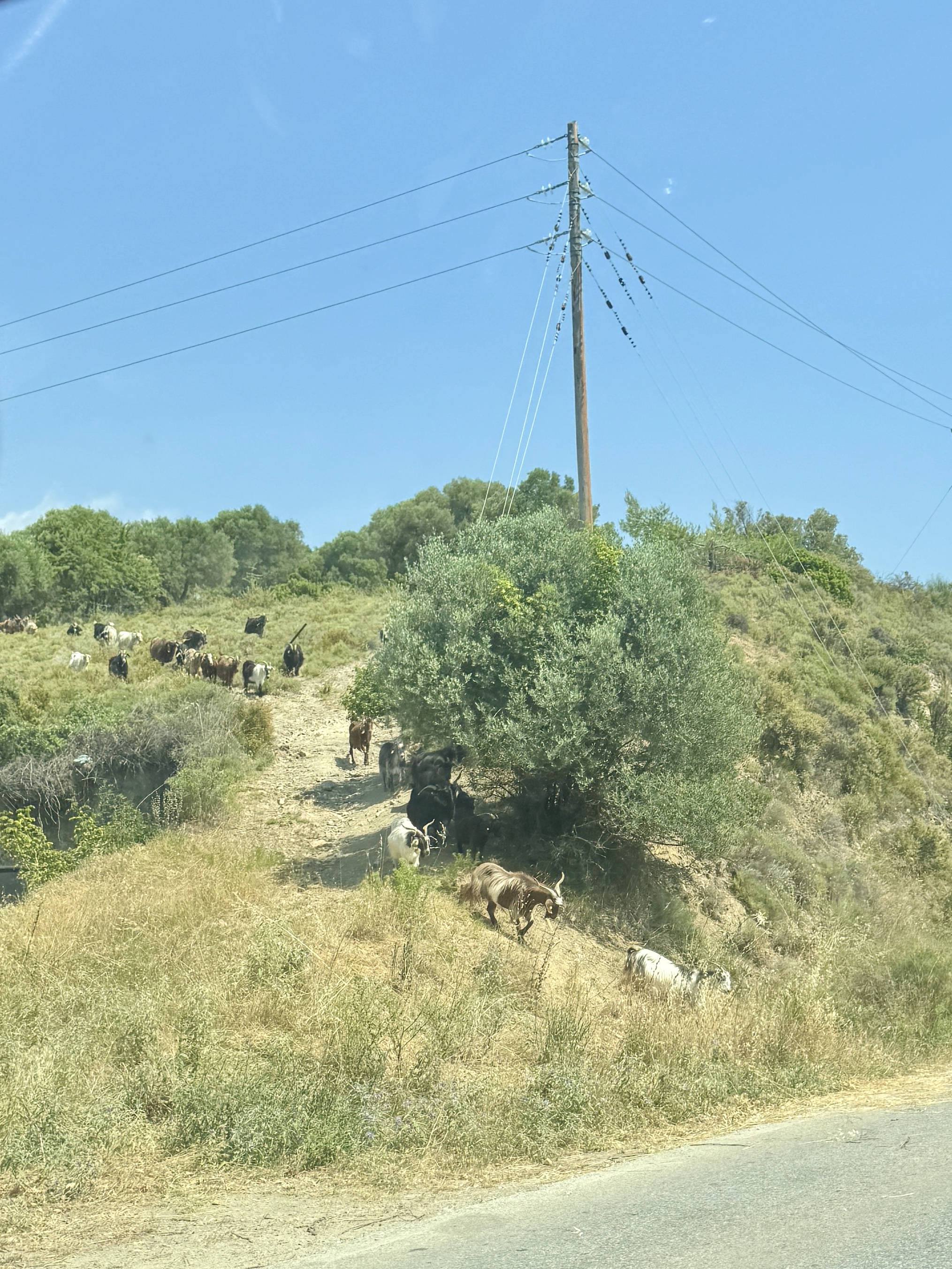 Stop # 4 was 15 minutes away from the resort when two women insisted they wouldnโt make it another second without peeing. As someone with a strong bladder and lots of pee anxiety, I can hold my urine for a minimum of 5 hours, maximum of like 10-12 depending on the situation and how much Iโve had to drink. We all peed before we left the airport and knew it was a 2 hour drive and I donโt believe anyone was slugging water on this trip because in Europe water is not readily available and we basically spent a week dehydrated. So why we had two almost oopsie pee pants moments from women who have not birthed children and thus have not ruined their pelvic floor yet IS BEYOND ME. We pulled over on the side of this back country road where thereโs a cliff down to the Aegean Sea and the rocky dirt becomes their toilet. One tucks herself behind a tree and takes care of business, the other stands directly next to the car and just lets it all wizz out, fully erect, no squat, no removal of skirt and/or underwear, if there was any. As my window was down, I saw and heard the thicc cascading waterfall of pee, and if I really wanted to, I probably couldโve reached out and touched it. And there isโฆno recovering from that. It was the most wild thing Iโve ever witnessed. The goats crossing the road wouldn’t have even pulled this maneuver. And that was only hour 3 of being in Greece.