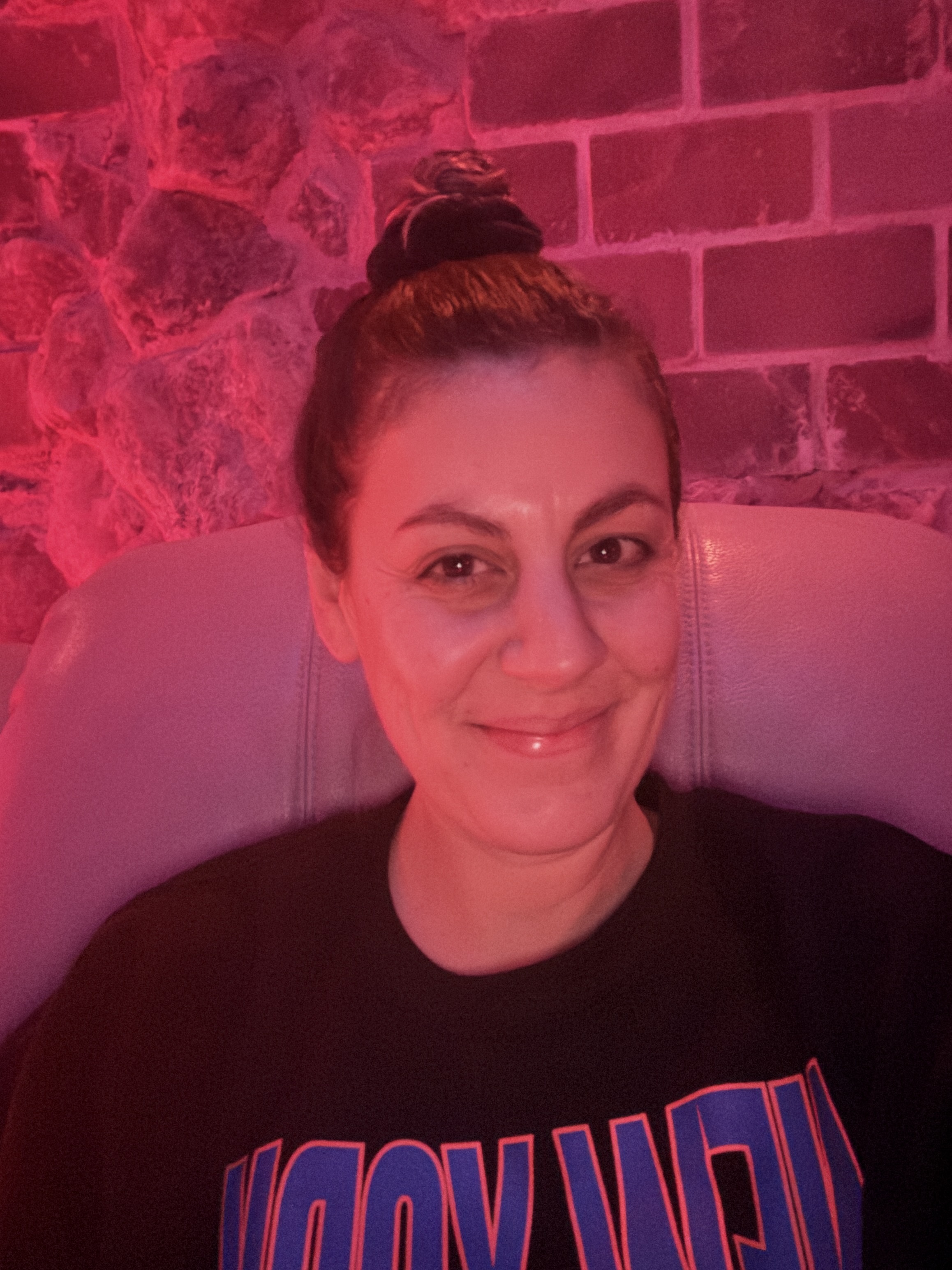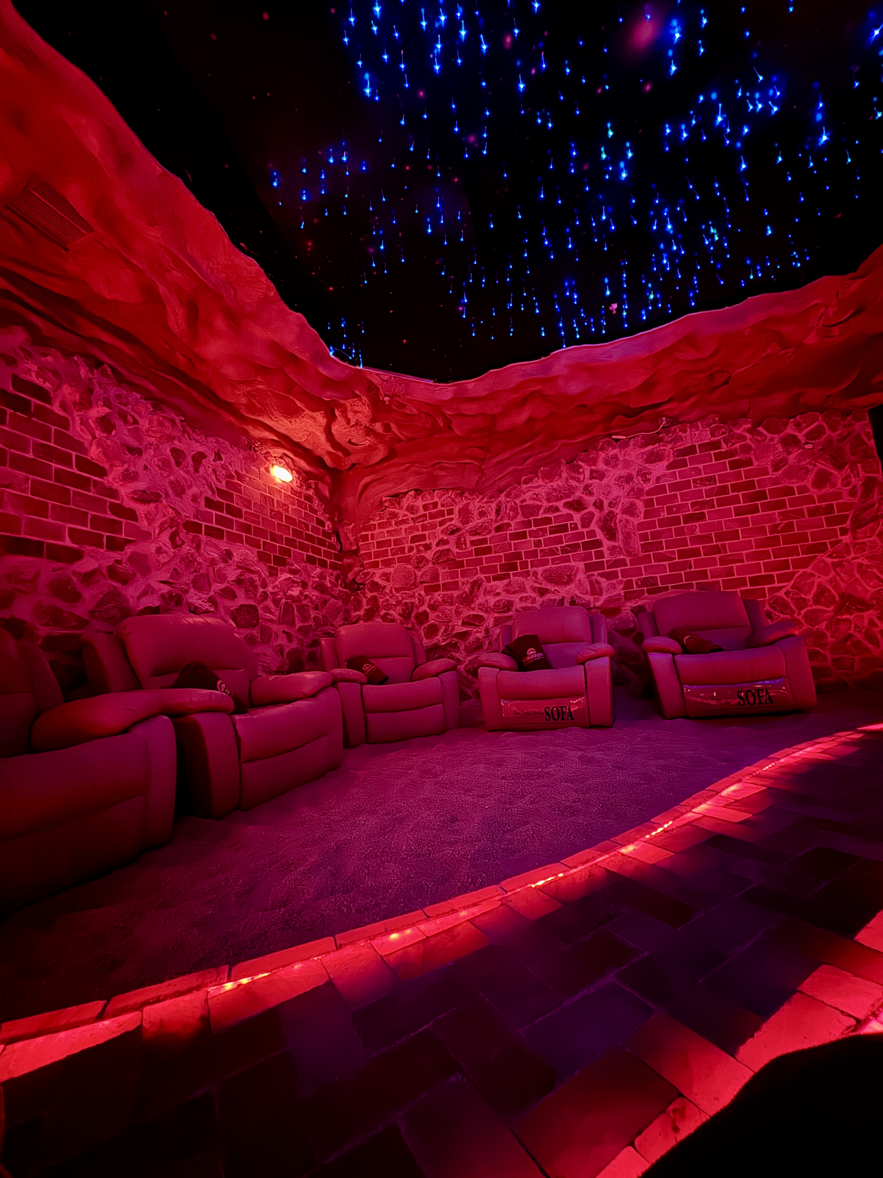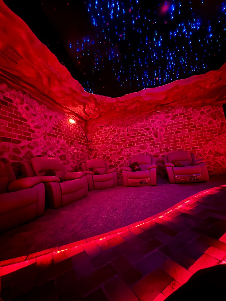 Appointment day arrives and BOY OH BOY was I looking forward to this after 72 hours of peopling. I couldnโt wait to sit in silence, heat, and probably leave with glowing skin from all the pink salt exposure. I followed the very rushed instructions in between choking that I received over the phone: bathing suit in backpack, comfy clothes, hair on top of my head, no caffeine, stay hydrated. It was a cold, rainy day and to my immediate disappointment, I was shuffled into a freezing, pitch-black cave for my first sesh of the day. I was instructed to leave my shoes and socks outside of the door because apparently itโs better to be barefoot in the salt. The woman who led me in and told me to pick my seat out of a number of recliners then did an entire spiel about the benefits of salt therapy that I understood none of as she sounded like an old VCR on Fast Forward, toeing the line between two different languages. I remember exactly ONE sentence and it was this: 45 minutes in a salt cave is worth 100,000 hours in the ocean. That seems incredibly dramatic. Are we getting our salt stats from ChatGPT?