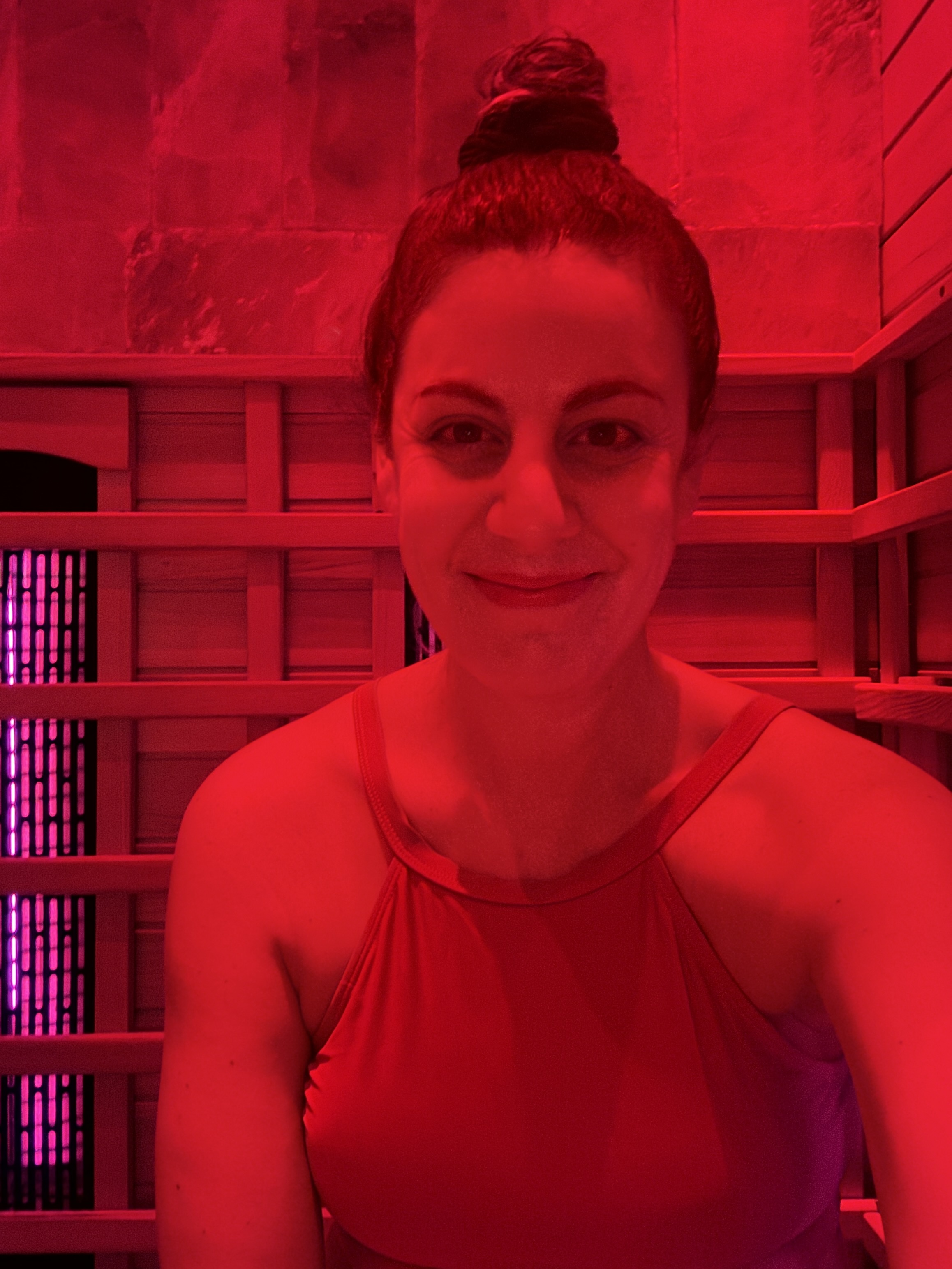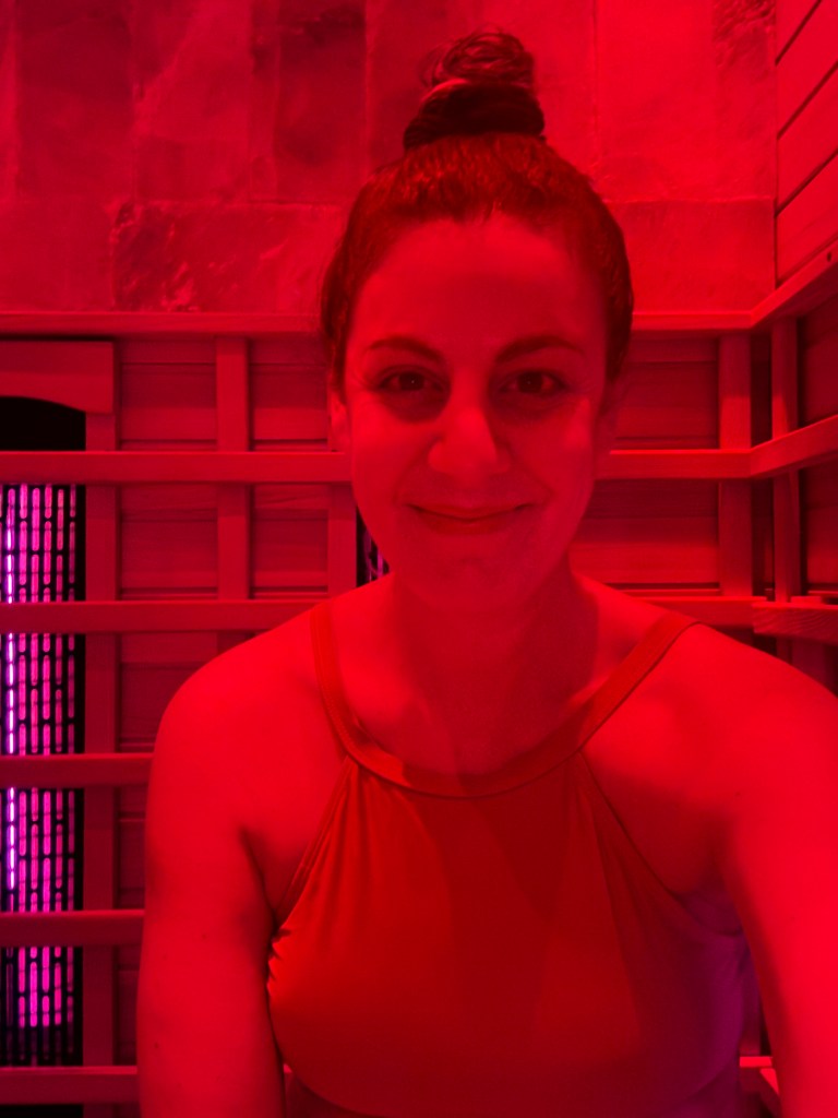 The massage therapists are picking up on the terrible energy just as much as I am and they start calling the wrong names into the wrong rooms for their appointments. Itโs a chaotic mess of shouting and running and me shuffling around in clown shoe slippers trying to stay out of everyone’s way until finally I am the chosen one to enter the sauna. Because yes, after all of this time the “room” that wasn’t “ready” yet was just a standard sauna that I would’ve been happy to share with others to escape receptionist tantrum from hell. I get in there for my solo sesh and immediately donโt know how to sit. The bench is too narrow to lay comfortably, but I try anyway with my arms across my chest, coffin style. Eventually my back reminds me that Iโm not a young chicken and therefore cannot lay on wood slabs without tweaking something so I sit up ramrod straight because if I sink into the corner, my back will be touching the equivalent of fire pokers.ย